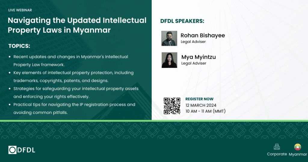 Don’t miss this opportunity to gain valuable insights and clarity on the evolving landscape of intellectual property rights in Myanmar. Register now to secure your spot and empower yourself with the knowledge needed to protect and leverage your intellectual property assets effectively.