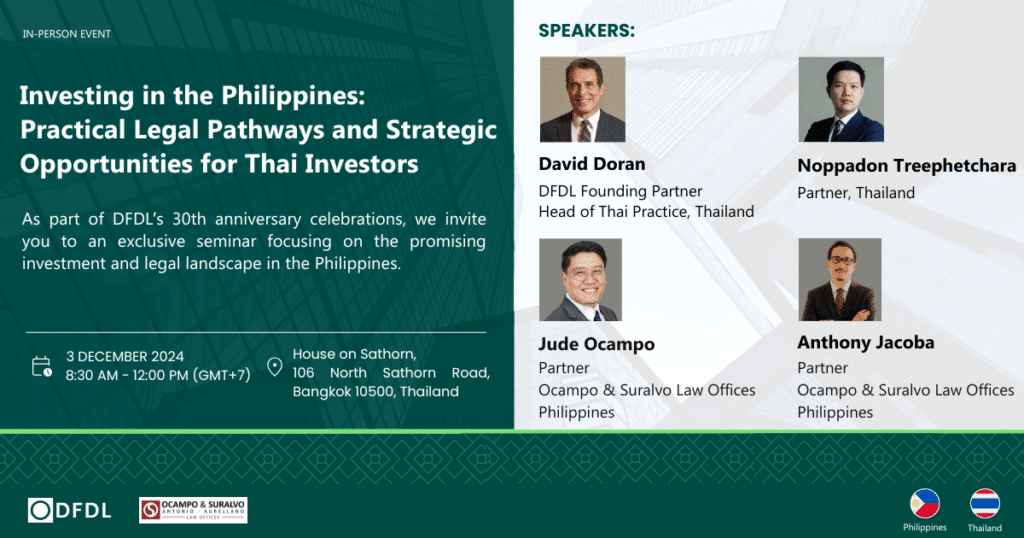 As part of DFDL’s 30th anniversary celebrations, we invite you to an exclusive seminar focusing on the promising investment and legal landscape in the Philippines.
